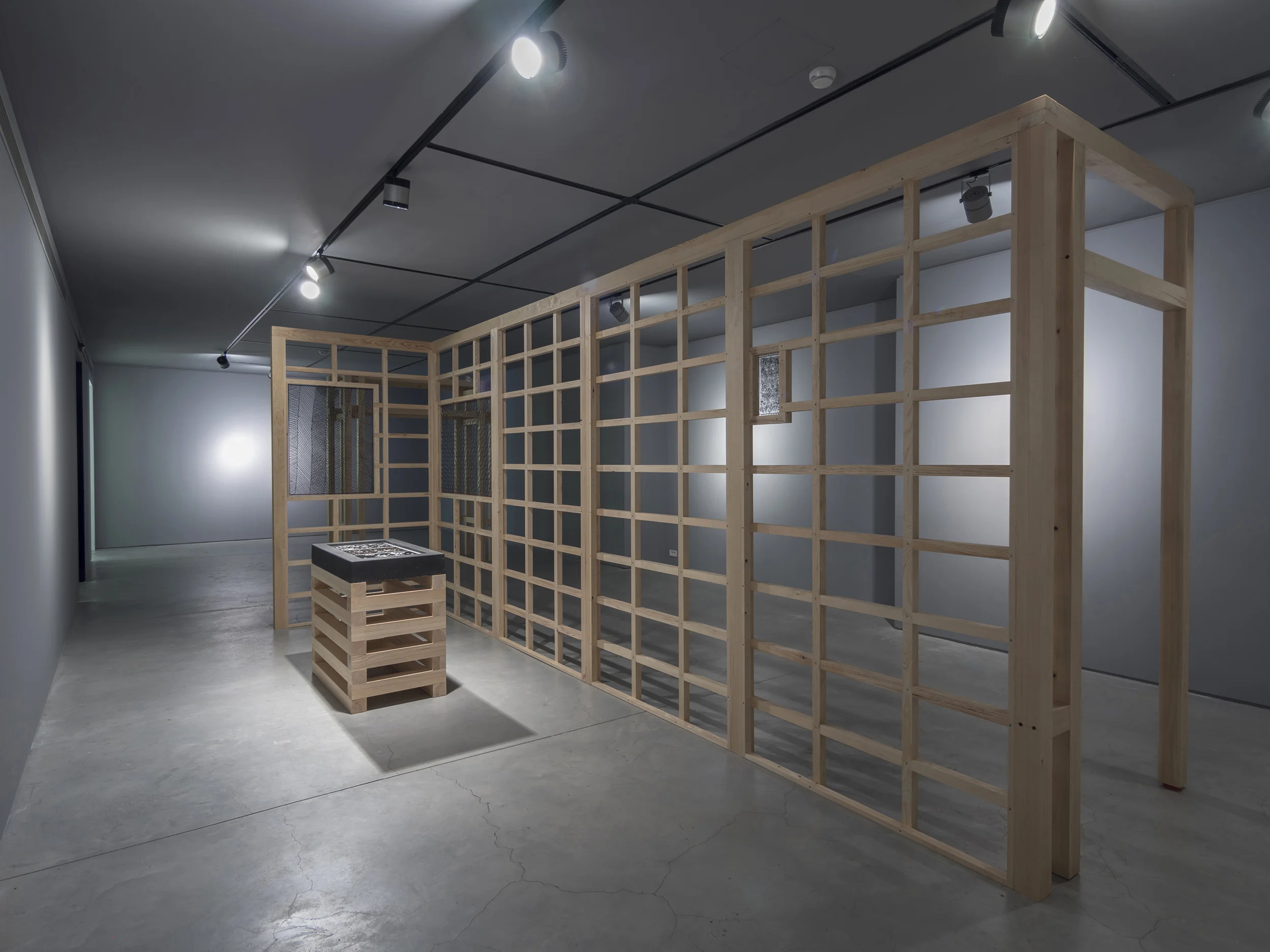 wood, bronze, carved basalt, handwoven fabric with silk embroidery | architectural installation | 2018 | Galeri Nev, Istanbul